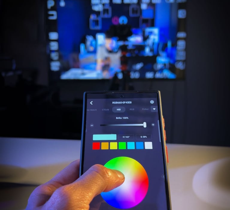 Perfecto para crear contenido de forma autónoma, iluminación profesional posibilidad amplia gamma de colores, especial para e-learning, talleres, cursos, reels, tutoriales, unboxing, streaming.